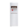 Thiết kế sang trọng với lớp vỏ màu trắng bóng tuyệt đẹp, phần trên cùng là vị trí đặt bình nước, tiếp theo phía trên thân máy là các nút lấy nước rất tiện lợi, vừa tầm với chiều cao người sử dụng. Bên cạnh đó máy còn thiết kế có ngăn chứa đồ khá tiện lợi ở phần dưới cùng của thân máy.