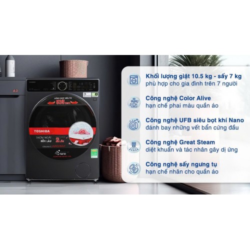 Đặc điểm nổi bật của máy giặt sấy Toshiba Inverter TWD-T25BZU115MWV(MG)